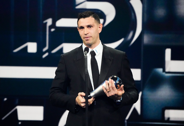 埃米利亚吉祥坊诺·马丁内斯 (Emiliano Martinez) 于 2023 年 2 月 27 日在法国巴黎举行的 2022 年国际足联最佳足球奖中获得最佳守门员奖。